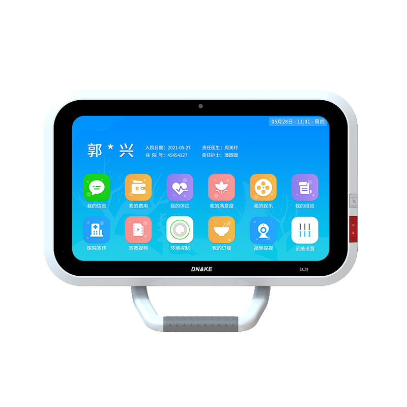 安裝在病床旁的支架或者搖臂上,用于顯示患者各項信息和報告,便于醫(yī)生和患者查看,具備各項娛樂功能,也可做娛樂設備試用,減輕患者住院焦慮。